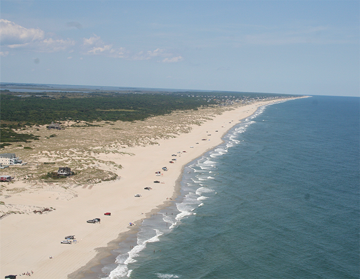 Aerial photo of Currituck Count Outer Banks beach.