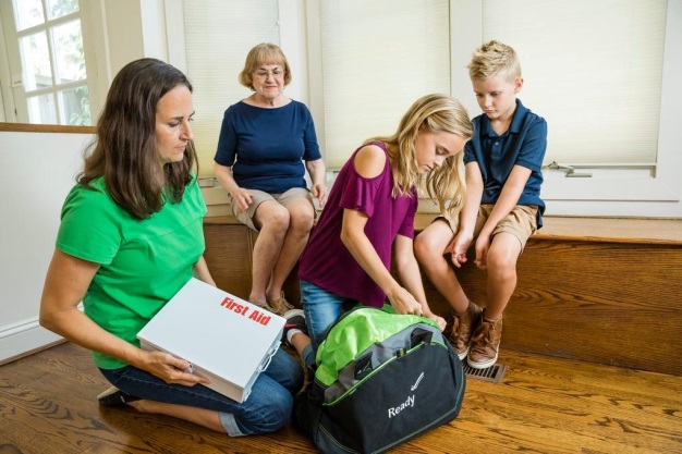 Family gathered to create their emergency kits.