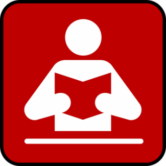 Drawing of person holding a book. The symbol for library.