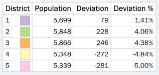 5 district with legend