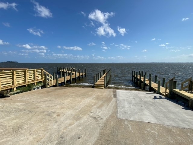 Repairing the boat ramp.