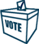 Box with Vote written on side and a ballot being put inside.