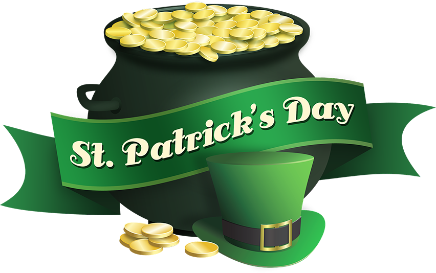 Pot of gold with a banner saying St. Patrick’s Day