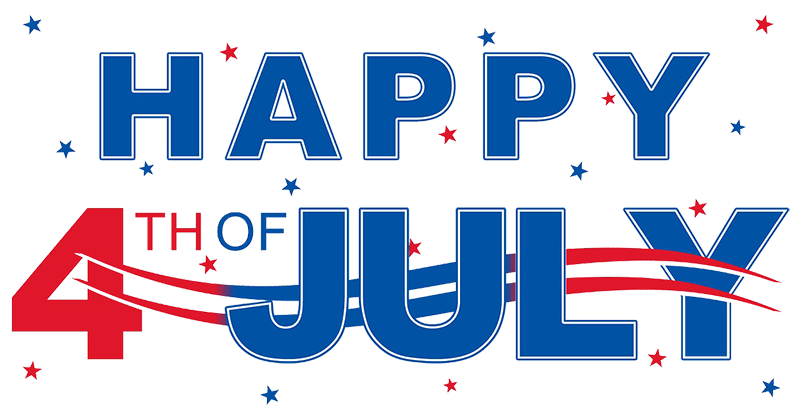 Red, White, Blue says Happy 4th of July.
