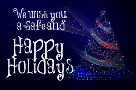 Christmas tree with the message “We wish you a safe and Happy Holiday’s”