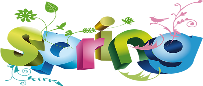 Spring spelled out in bright spring color with decoration around it.