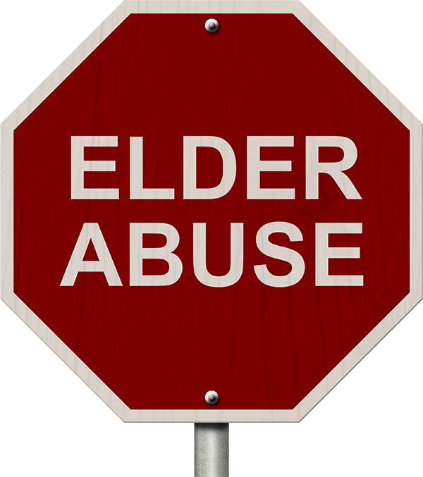 Stop sign with elder abuse written on it.